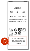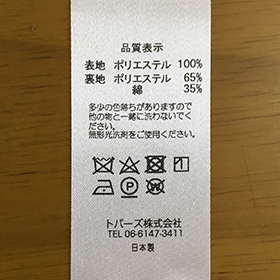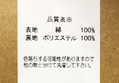 繊維製品には家庭用品品質表示法により事業者が適切な表示をすることが義務付けられています。